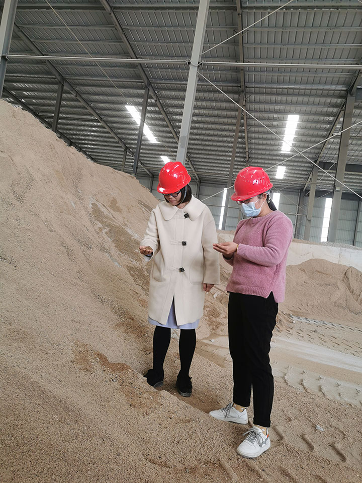 混凝土公司曹惠、曾萍仔細檢查,嚴格把關生產混凝土的原材料,確保混凝土出產品質。